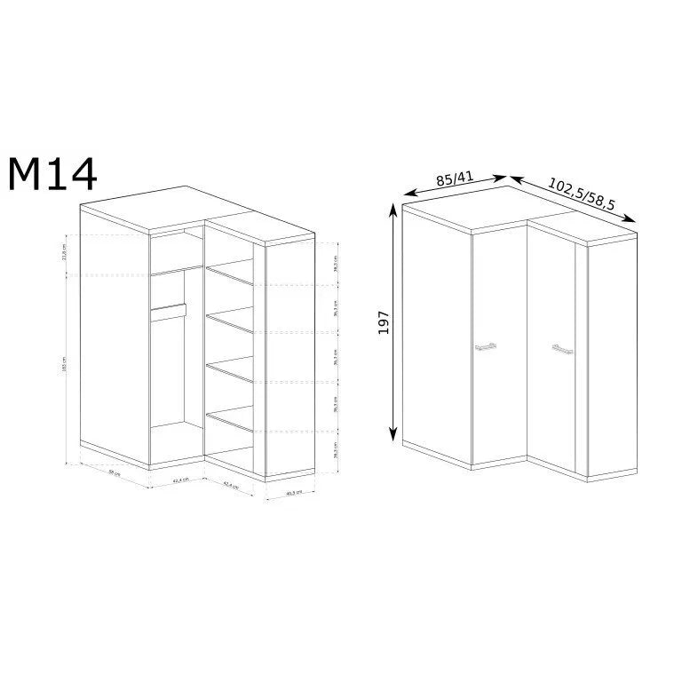 Kampinė spinta Mediolan M-14